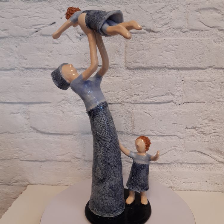 Alle objecten worden biscuitgebakken en daarna geglazuurd. Ik maak beelden en objecten voor voor binnen en buiten. Ik stook ze dus laag (aardewerk) en hoog (steengoed) in mijn electrische oven. Laaggestookt werk kan niet tegen een temeratuur beneden het vriespunt. Het is daarom alleen geschikt voor binnen. Hooggestookt werk kan buiten staan, zelfs in de winter.
